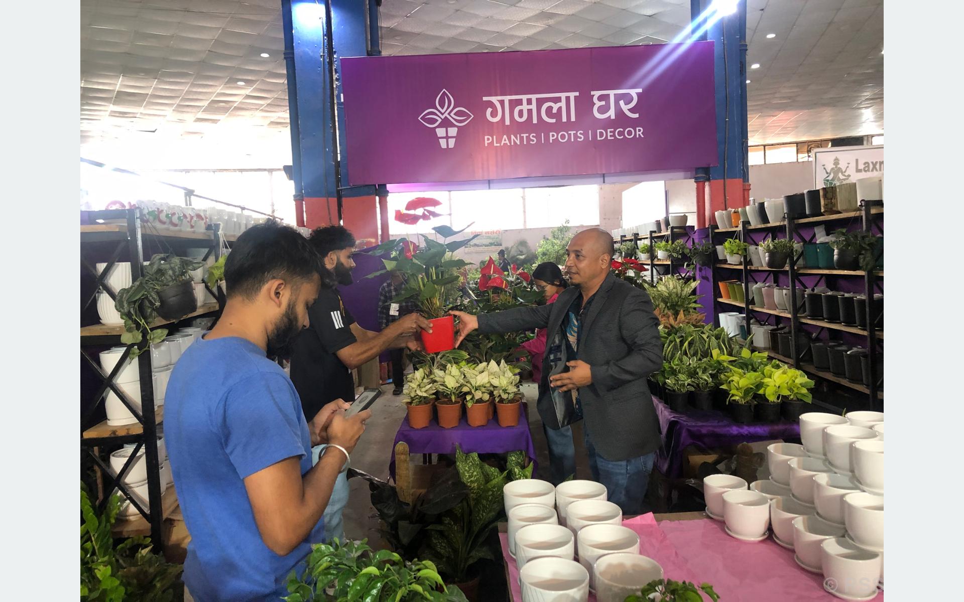 भृकुटिमण्डपमा जारी पुष्प प्रदर्शनीमा शनिबार पुग्दा तुलाधार ग्राहकलाई फूल तथा नर्सरीका विरुवा बिक्रीमै व्यस्त हुनुहुन्थ्यो । प्रदर्शनीमा व्यापार बढाउनुपर्छ भन्ने त थियो नै कुन विरुवाको स्याहारसुसार कसरी गर्ने, कति समयमा कति मात्रामा पानी राख्ने ? भन्ने सीप सिकाउन उहाँ व्यस्त हुनुहुन्थ्यो ।