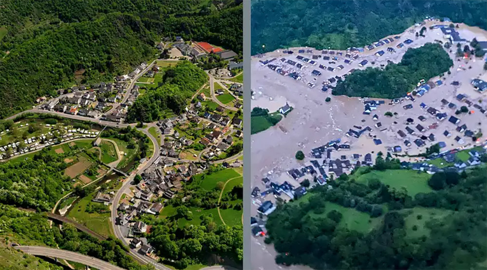 तर १४-१५ जुलाई २०२१ मा, यो तस्वीर पूर्ण रूपमा परिवर्तन भयो । केही घन्टामै भारी वर्षाले ८५ किलोमिटर लामो आर नदी आक्रामक नदीमा परिणत भयो । पछिल्ला २००-३०० वर्षमा, यसको किनारमा बनेका धेरै भवनहरू भत्किन थाले । करिब ७२ घण्टापछि आर नदी पूर्ण रूपमा शान्त भयो, तर त्यतिन्जेलसम्म मानव बस्ति रहेका धेरै घर, पुल र रेलवे स्लीपर खाली भइसकेका थिए । कम्तिमा १३५ व्यक्तिको मृत्यु भयो र अरबौं यूरोको सम्पत्ति क्षतिग्रस्त भयो । पातलो खोला जस्तो खोला पनि आफ्नो पुरानो बाटो खोज्न कति हताश हुन्छ भनेर आर नदीले देखाएको थियो ।