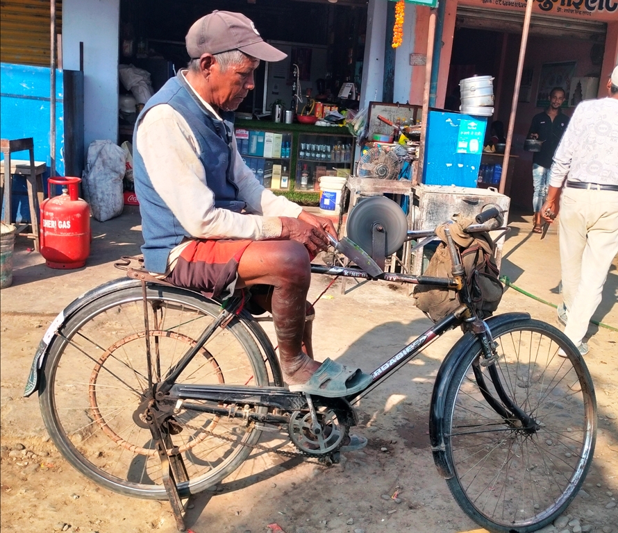 हतियारमा ‘धार’ लगाएर जीविकोपार्जन गरिरहेका ७० वर्षीय मुखिया