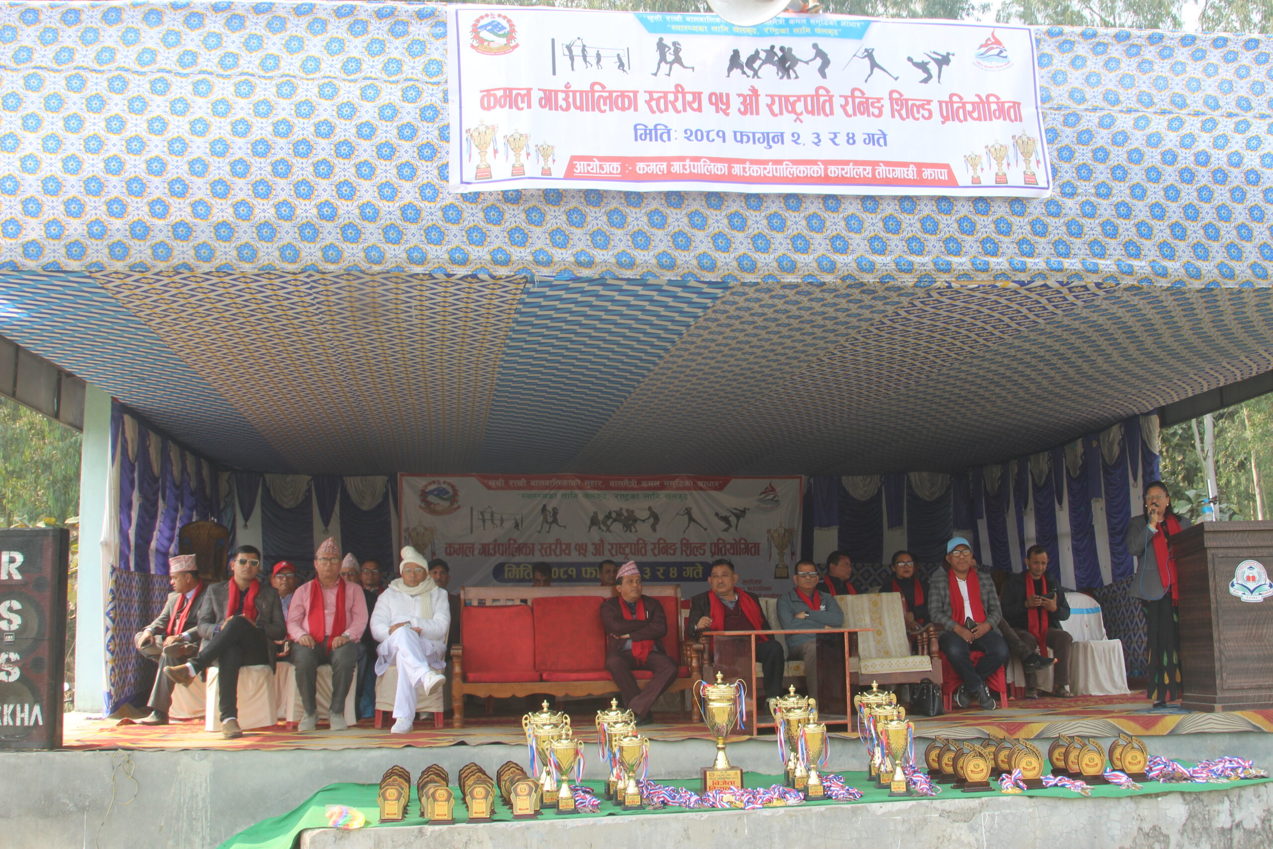 कमल, २ फागुन : झापाको कमल गाउँपालिकामा कमल गाउँपालिका स्तरीय १५ औं राष्ट्रपति रनिङ शिल्ड प्रतियोगिता आज (शुक्रबाट) बाट सुरु भएको छ ।